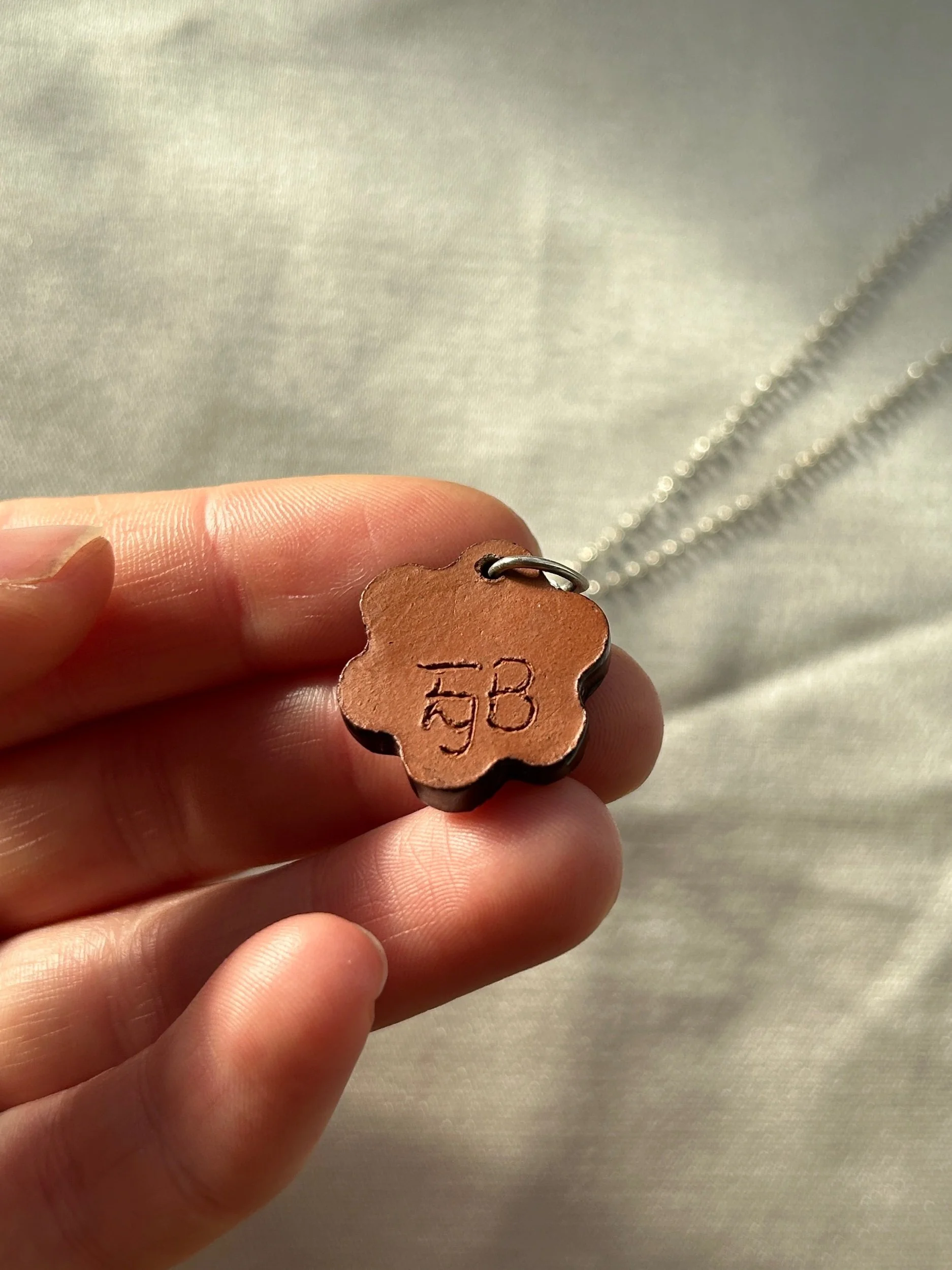 Terracotta pendant charm necklace (small daisy)